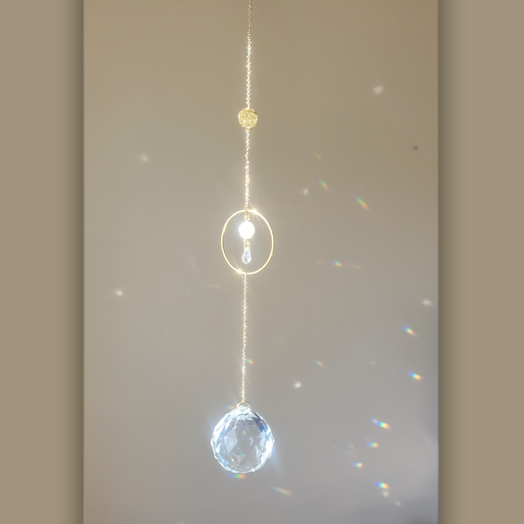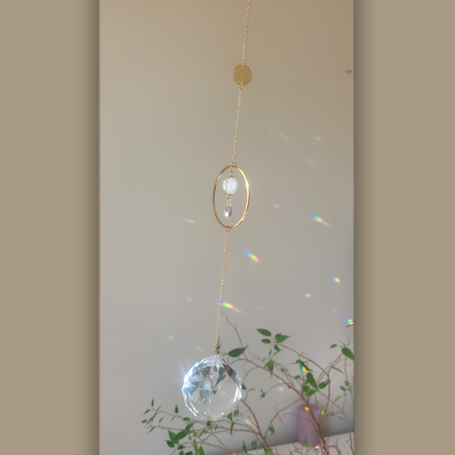 Au bas de la composition, un grand cristal sphérique AAA de 4 cm capte la lumière,