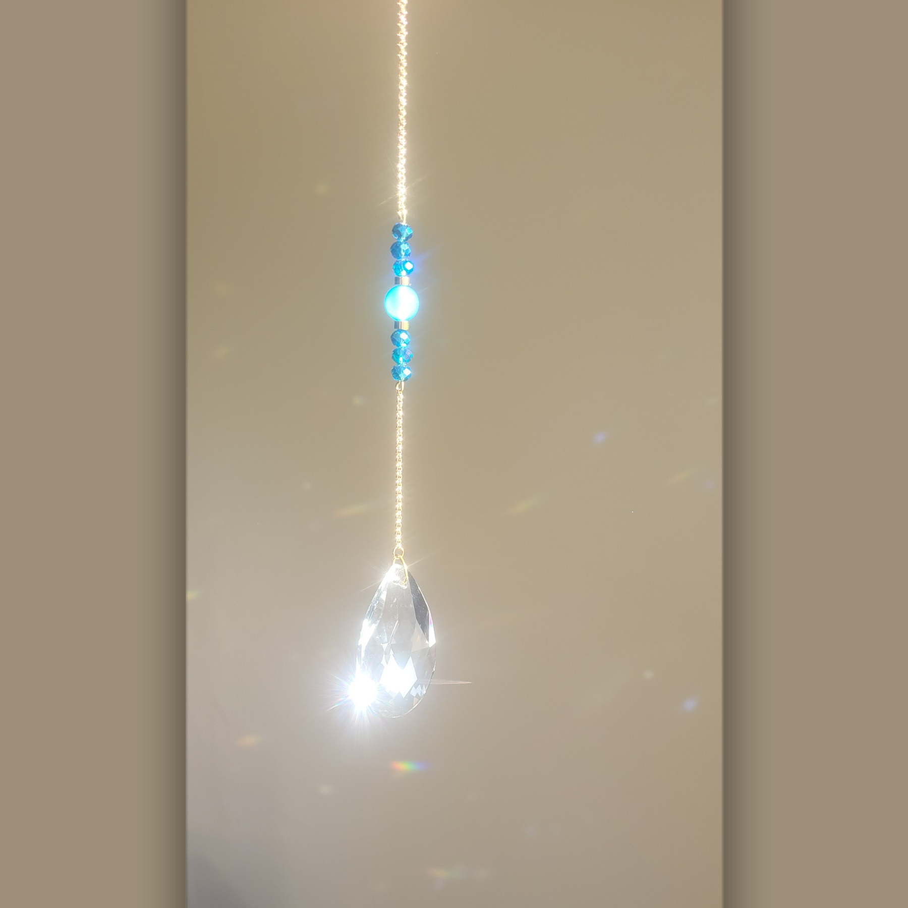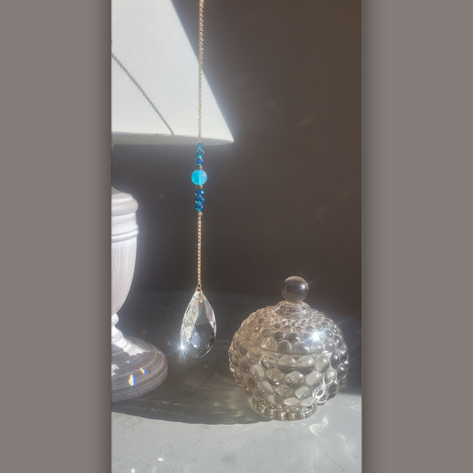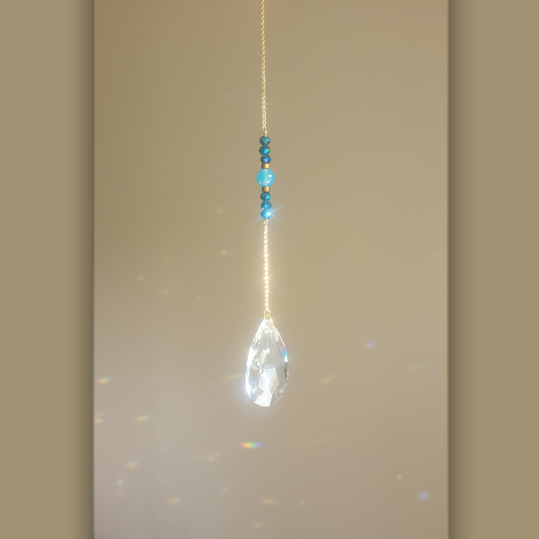 Au centre, une goutte de cristal AAA de 5 × 3 cm irradie la lumière, transformant chaque rayon en reflets intenses,