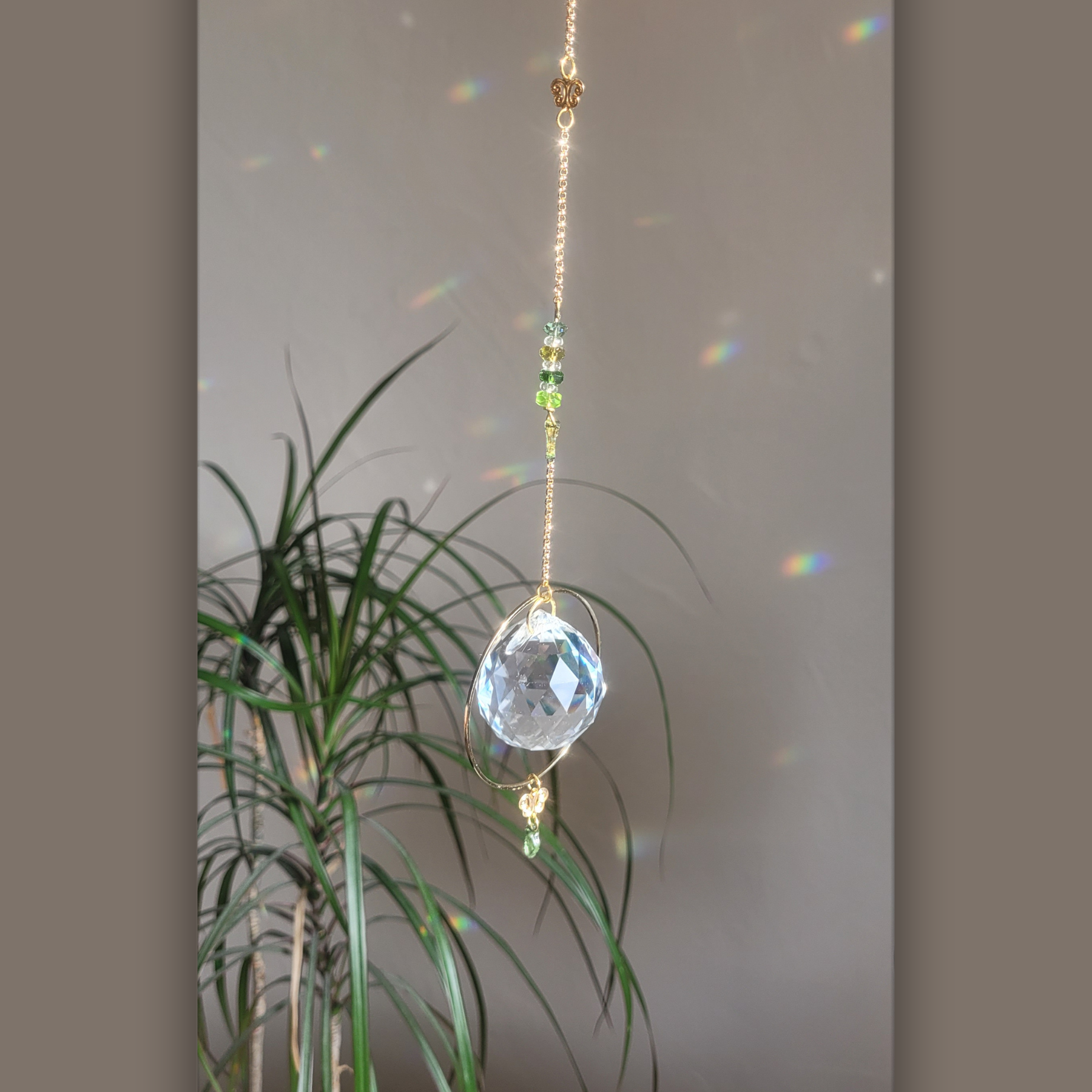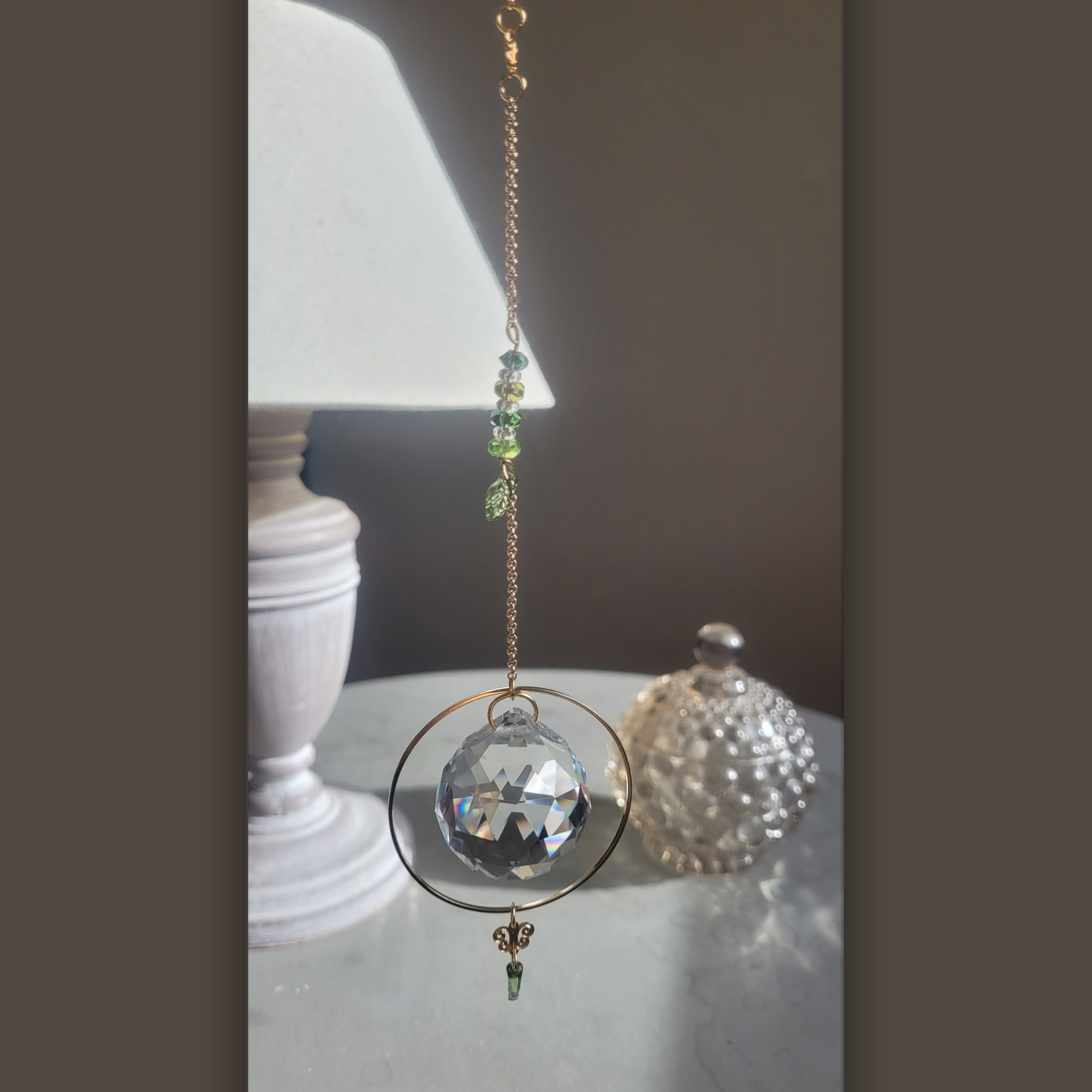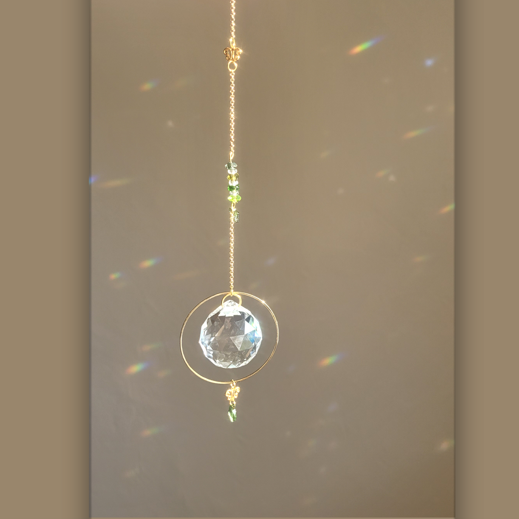 Au centre, un cristal sphérique de qualité supérieure de 2 cm capte la lumière et la transforme en reflets scintillants,